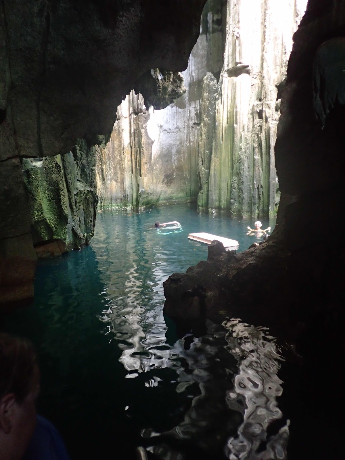 Unique experience to swim in the cave totally surrounded by rock and with towering walls above you